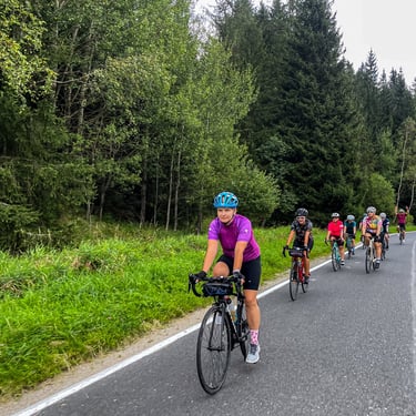 Trasy są zróżnicowane – najczęściej górskie, więc mają swoje wyzwania. Jednak tempo jazdy i organizacja grupy pozwalają każdej uczestniczce pokonać każdy podjazd i zjazd w komfortowym tempie.