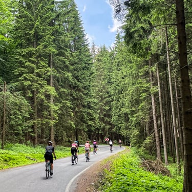 Od lat spotykamy sie w kobiecym gronie w Zielencu w Kotlinie Klodzkiej, aby jezdzic szosa i gravelem po tych spokojnych i pieknych terenach.