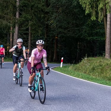 Trasy są zróżnicowane – najczęściej górskie, więc mają swoje wyzwania. Jednak tempo jazdy i organizacja grupy pozwalają każdej uczestniczce pokonać każdy podjazd i zjazd w komfortowym tempie.